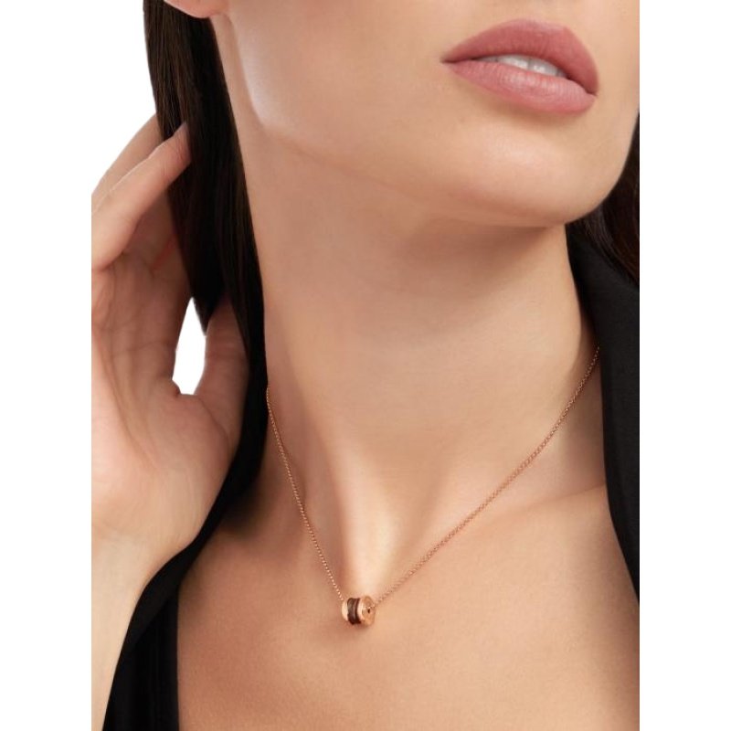 Drawing inspiration from the world-famous amphitheater, the Colosseum, the B.zero1 pendant is a true expression of Bvlgari’s creative vision, challenging the very essence of jewellery design. Its unique, pure spiral shape symbolises the harmony of past, present and future – reflected in the magnificence of the Eternal City – and the pioneering spirit of the collection. B.zero1 pendant in 18K rose gold and cermet.