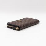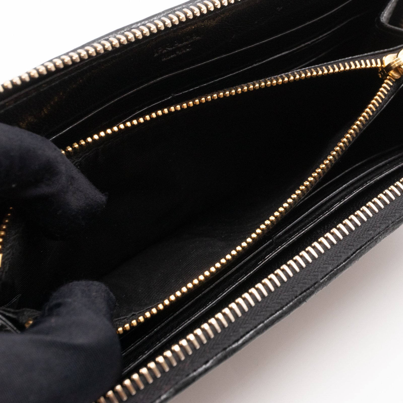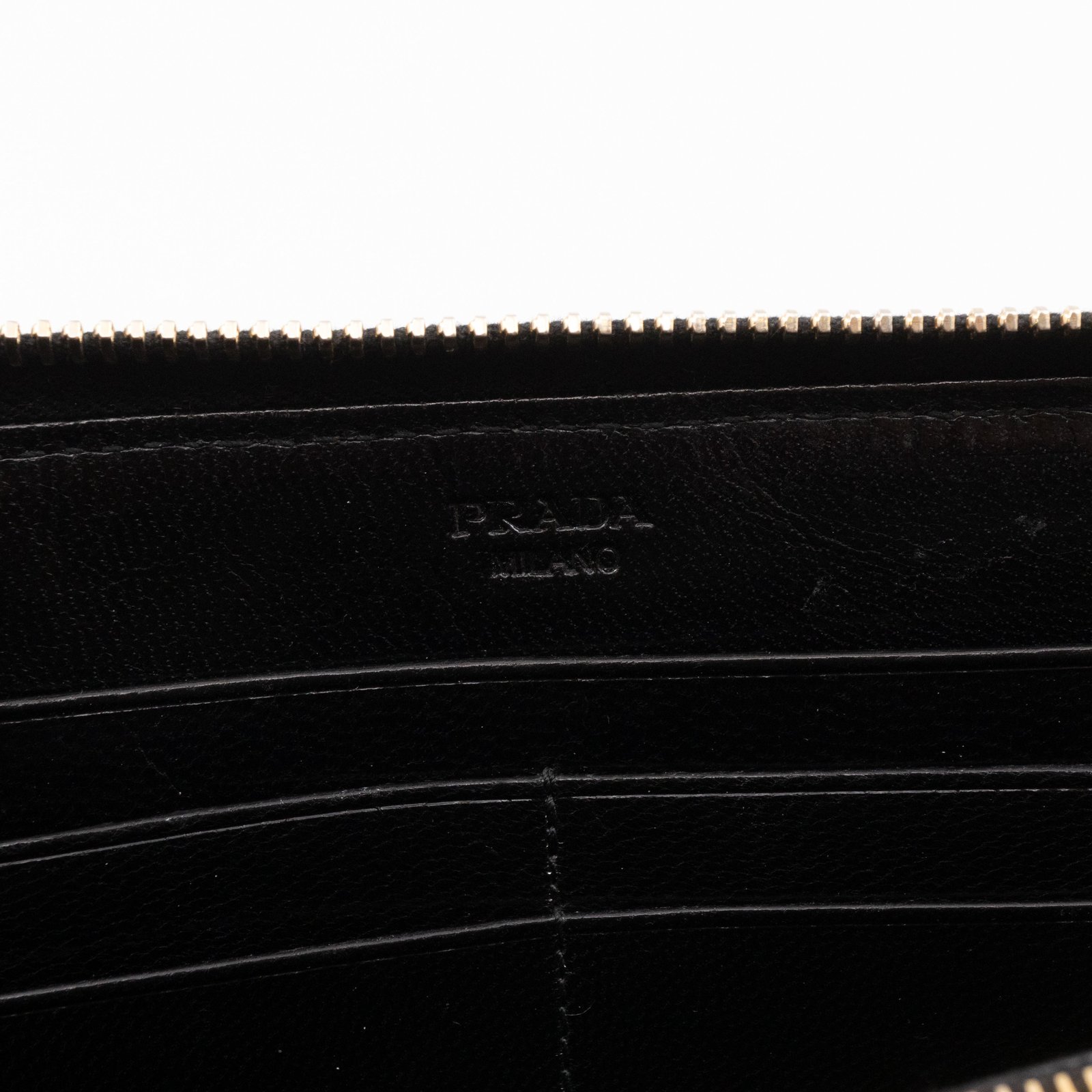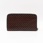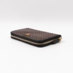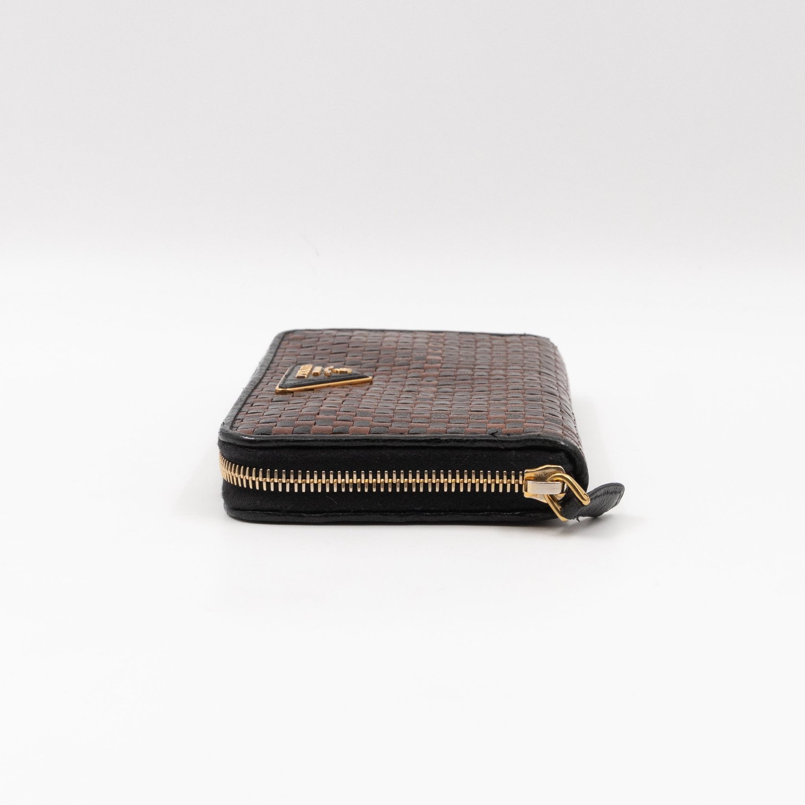 A limited edition Prada Madras series zip around wallet. Made with black and brown leather, in a stunning woven pattern. On the front a large Prada logo. Opens up to several card slots and a zipper pocket in the middle.