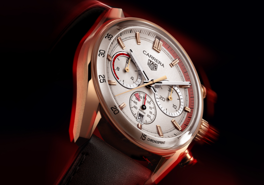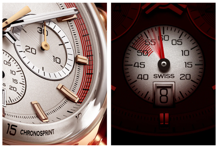 The dial is embellished with eye-catching red details, and the outer edge is decorated with a two-color 60-second scale in bright beige and black, and is engraved with the iconic “Porsche” lettering.