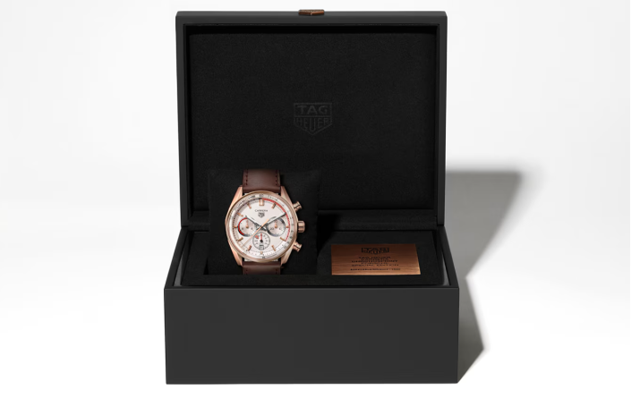 This lacquered wood watch box with rose gold lining is specially designed for the TAG Heuer Carrera Porsche Special Edition Chronosprint watch. It is an ideal fit and adds even more luxury to this racing masterpiece.